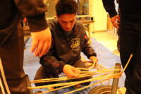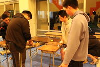 「火文字」の作成は3年生中心に協力しながら縄を編んでいました。寮生会のメンバーも会場の飾り付け準備頑張っていました。