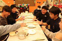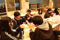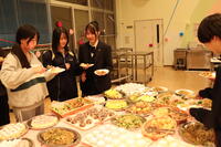 11月13日(木)寮祭当日は、寮庭で寮祭伝統の火文字『耕心』の文字が夜空に浮かびました。寮生会企画のビンゴ大会はとても盛り上がりました。夕食は、ピラフや焼きそば、デザートなど豪華な食事を楽しみました。