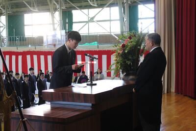 卒業証書授与では、一人ひとりの名前が呼ばれ、生徒たちは保護者や教職員への感謝を胸に、真剣な面持ちで証書を受け取っていました。