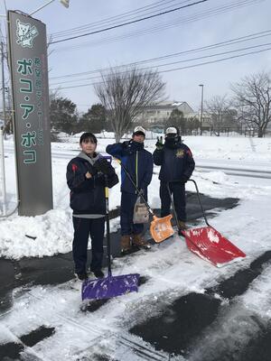 野球部が地域の雪かきボランティアを行いました。
